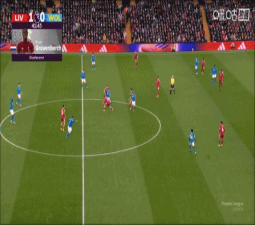 英超联赛第18轮利物浦迎战狼队的比赛在安菲尔德球场进行,上半场埃基蒂克兜射中柱,麦卡利斯特抽射中柱,弗林蓬助攻赫拉芬贝赫抽射破门,埃基蒂克助攻维尔茨打进红军首球,半场结束,利物浦2-0狼队。下半场布埃诺补射扳回一城,阿洛科达尔头球造险,最终利物浦2-1狼队联赛三连胜暂升第4。