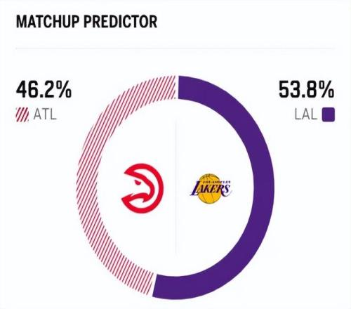 这是两队本赛季的第二次交锋,上一场交手,老鹰队以20分之差大胜湖人。赛前,美媒ESPN对本场比赛进行了胜率预测,湖人胜率为53.8% ,占据优势,老鹰队胜率则仅有46.2% 。