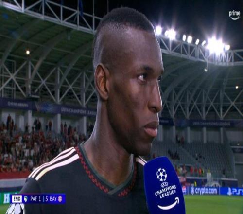 雷速体育10月1日报道宣称 北京时间10月1日03:00,欧冠联赛阶段第二轮,拜仁慕尼黑客场5-1大胜帕福斯FC,本场比赛结束之后为球队传射建功的杰克逊接受采访。