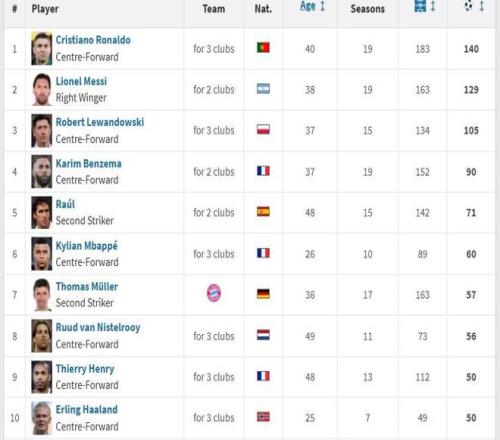 据统计,曼城中锋哈兰德在49场欧冠比赛中打进50球,成为史上最快解锁欧冠50球成就的球员。