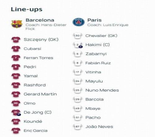 北京时间10月2日3:00,欧冠联赛阶段第2轮焦点战,巴塞罗那坐镇主场迎战巴黎圣日耳曼,本场主裁判为迈克尔-奥利弗,赛前双方首发出炉。