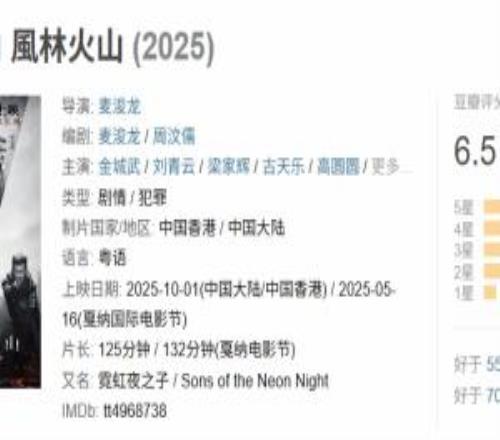 体育资讯10月2日报道宣称 今日,电影《风林火山》豆瓣评分解禁,截止发稿前,豆瓣评分6.5分。