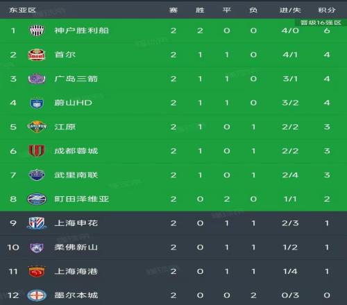 北京时间10月2日,亚冠精英东亚区第二轮结束了所有比赛,我们一起看看最新的积分榜变动!