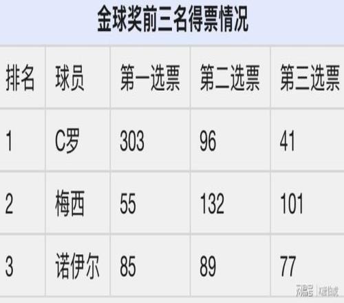2014年的金球奖C罗获得了303张选票的第一选票,排名第二的梅西获得55张选票,紧随其后的诺伊尔85张。由此不难看出该赛季里C罗的领先优势是不可阻挡和质疑的,个人能力的碾压式上升达到了顶峰。