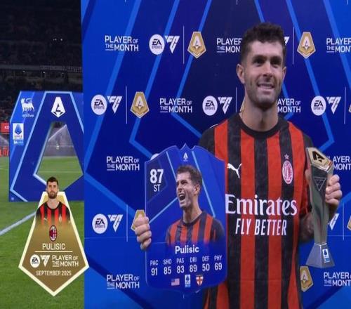 这个奖项就是意甲联赛的9月最佳球员奖,普利希奇在9月的三场意甲联赛当中全部出场,虽然累计出场仅147分钟,但贡献了3个进球和2次助攻,最终他荣获这一奖项。