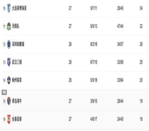 随着三镇12,梅州14,中超积分:1队保级成功,3队成降级热门
