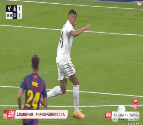 雷速体育10月26日报道宣称 西甲第10轮,西班牙国家德比,皇家马德里坐镇主场伯纳乌迎战巴塞罗那。比赛第22分钟,姆巴佩接贝林厄姆直塞先拔头筹。