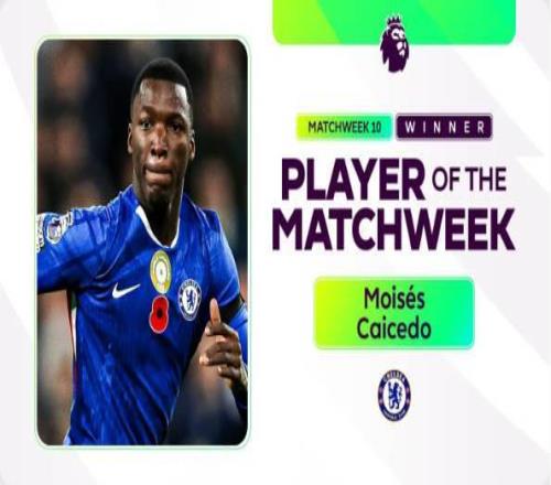 官方:切尔西中场凯塞多被评为英超第10轮最佳球员