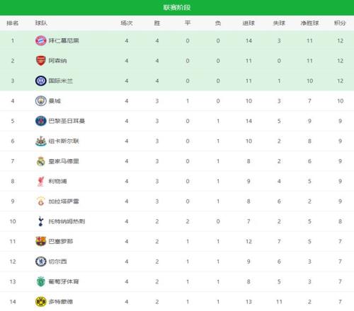 曼城41大胜,巴萨33爆冷!欧冠最新积分榜:穆里尼奥3连败