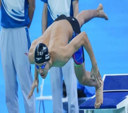 对于喜欢游泳的观众来说,张展硕的名字并不陌生。2024年年初的多哈世锦赛,不满17岁的张展硕第一次在世界大赛中登场,在4×200米自由泳接力项目中,他担任最后一棒,力压韩国队和美国队,和队友季新杰、王浩宇、潘展乐一起游出了7分01秒84的成绩,打破了英国、美国和澳大利亚对这个项目26年的统治,摘得了这枚具有划时代意义的金牌。