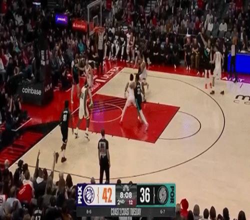 第四节开拓者谢登-夏普拿下6分,太阳吉莱斯皮拿下9分,最终开拓者110-127不敌太阳