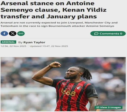 镜报和伦敦足球记者RT消息,关于塞梅约的竞争现在已经开启,但目前来看,阿森纳无意参与冬天对这名边锋的争夺战,因为在经历了一个繁忙的夏窗之后,枪手打算度过一个安静的冬窗。