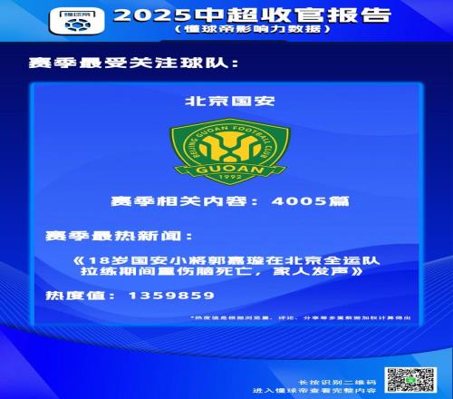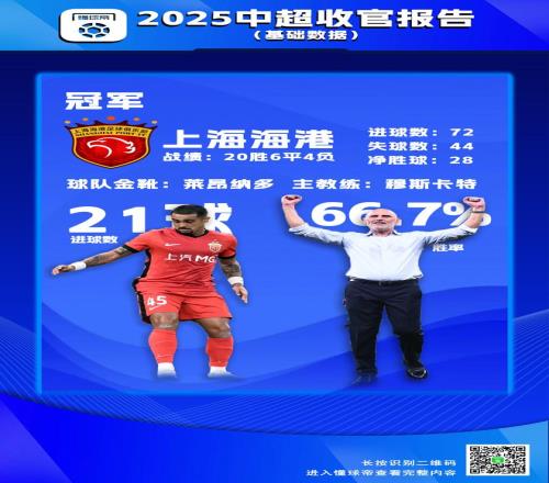 2025赛季中超联赛已经落下帷幕,一年一度的《懂球帝中超收官报告》正式跟大家见面啦。今年,我们将从懂球帝影响力数据、赛事基础数据以及中超MVP相关数据三个方面,来为您呈现这一整个赛季中超的盛况。