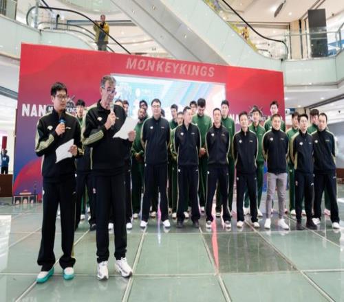 2025年11月29日下午,以“新锐·更意进取”为主题的南京同曦大圣俱乐部洋河天之蓝队2025-26赛季CBA联赛出征仪式在同曦万尚城一楼圆满举行。同曦集团董事长陈广川、副总裁马华艳、杨红珍,南京同曦篮球俱乐部执行董事陈曦、俱乐部总经理王震、洋河股份江宁分公司经理龚跃、李宁篮球运动资源部经理陈祎蕾、Supercover公司CEO陈良池、同曦男篮全体教练员、球员以及数百名球迷共同见证了这一重要时刻。仪式上,球队以“青春风暴”为旗、“新锐进取”为志,正式吹响新赛季的出征号角。
