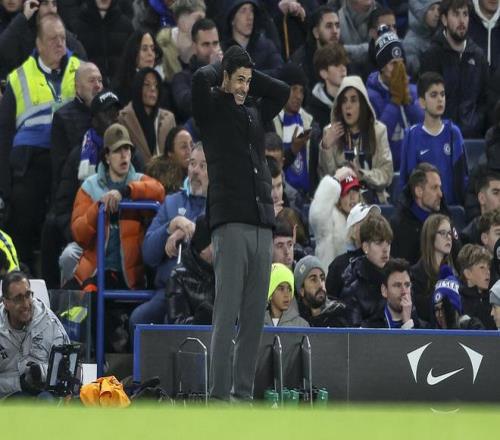 多打一人始终无法取得领先,阿尔特塔也显得有些无可奈何。