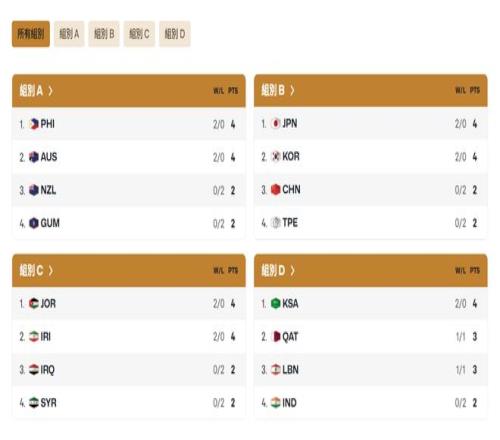 男篮世界杯亚洲区预选赛分组与积分/图片来源:FIBA官网