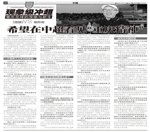 《足球》:感觉您对重庆足球感情很深。