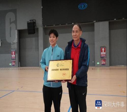 深圳市慈善会副会长徐刚、叶征航分别代表市慈善会,向2020年东京奥运会羽毛球混双冠军黄东萍和红岭中学副校长秦立法授予专项公益基金牌匾。这两项基金的设立,标志着体育影响力与慈善事业在深圳校园的一次创新结合。
