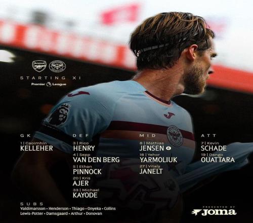 北京时间12月4日3:30,英超第14轮,阿森纳主场对阵布伦特福德。赛前首发公布。