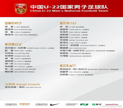 值得注意的是,在今年U20亚洲杯、中超联赛中均有不俗表现的中锋、来自申花俱乐部的刘诚宇没有入选。由于在锋线位置上,U22国足拥有包括王钰栋、朱鹏宇、拜合拉木、向余望等多名强将,因此安东尼奥暂时放弃刘诚宇,也算不上什么意外。