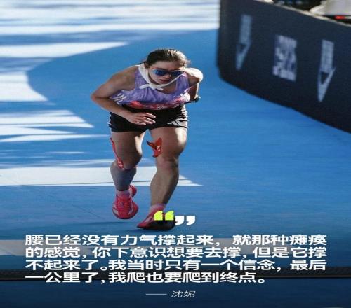 “腰已经没有力气撑起来,就那种瘫痪的感觉,你下意识想要去撑,但是它撑不起来了。我当时只有一个信念,最后一公里了,我爬也要爬到终点。”她回望那段艰难。