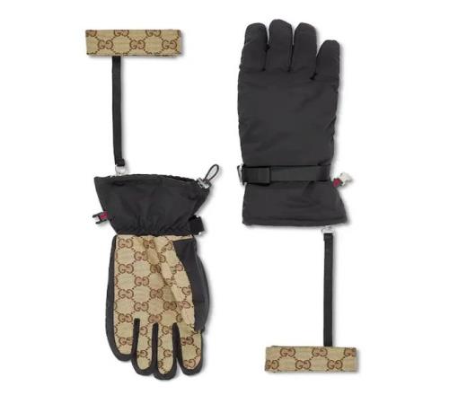 GUCCI 推出首个冬季运动服系列 Gucci Altitude,将出众性能与典藏元素巧妙融合。这款夹绒手套采用黑色织物面料匠心打造,缀饰米色和深棕色GG织物面料饰片,保暖有型两不误。