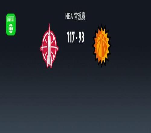 第四节火箭阿门-汤普森拿下7分,太阳贾马雷-布耶亚拿下11分,最终火箭117-98战胜太阳