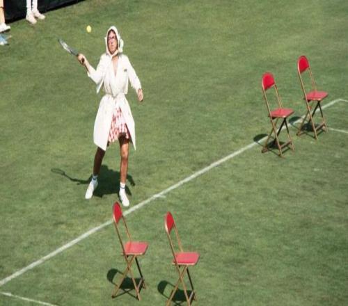 另一边的比利·简·金则非常认真地进行着训练,因为她有不得不赢的理由——如果她能击败鲍比·里格斯,那么所有认为自己应该获得同工同酬、平等机会和平等尊重的女性都将分享这份胜利。