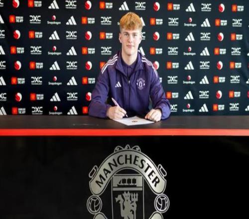 报道称,哈迪已与曼联签订了奖学金协议,并与青训营运营主管史蒂夫-海厄姆一同在卡灵顿亮相,后者向这位小将赠送了曼联俱乐部的西装。
