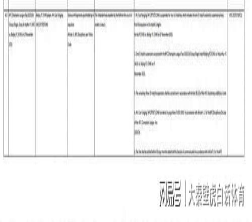 ④、曹永竞被责令依照亚足联纪律通告第4.1.2条,收到通知后,30日内支付1500美元罚款。