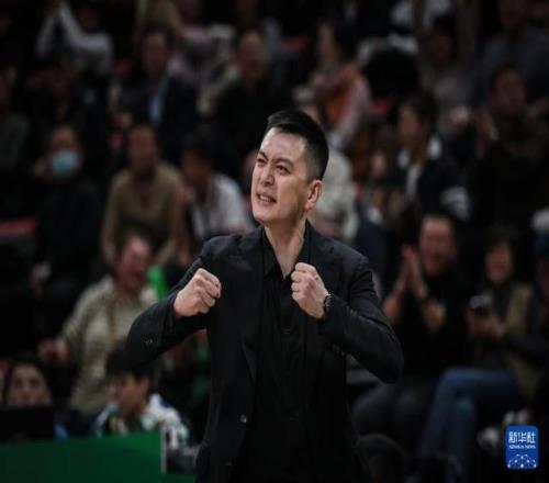 12月15日,辽宁本钢队主教练杨鸣在比赛中庆祝。新华社记者 潘昱龙 摄