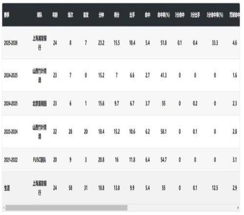 除了21-22赛季是大学生联队之外,刘禹彤实际上是2023-24赛季才开始征战WCBA,上赛季她在山西、北京场均都只有15分钟,本赛季刘禹彤终于获得了稳定的登场时间,这也是她生涯新高的场均得分时间。