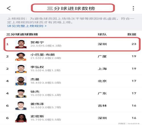 CBA劳模!出场时间联盟第1,三分球命中数联盟第1,得分本土第2