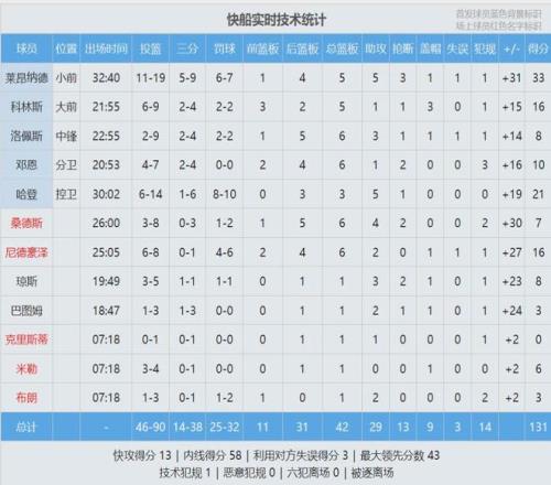 国王第三节31-27追回4分,但依然难阻败局。为了保险起见,第四节泰伦卢又让伦纳德打了5分钟,领先到39分才将其换下。全场结束,快船131-90狂胜国王,快船豪取5连胜,继续北伐!伦纳德19中11,砍下33分5板5助3断1帽!