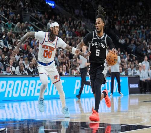 暂停归来,唐斯抛射得分,福克斯再取4分巩固优势,麦克布莱德的三分与中投一度将分差追至1分,科内特的补篮与勾手则帮助尼克斯稳住阵脚。随后唐斯6犯毕业,凯尔登抢下关键篮板造犯规,两罚全中让马刺领先5分。布伦森的三分命中为尼克斯续命,巴恩斯与凯尔登接连罚球命中扩大优势,麦克布莱德三罚全中再度缩小分差,但凯尔登关键时刻抢到球权造犯规,稳稳罚中锁定胜局。最终,马刺在文班亚马伤退的情况下上演绝境逆转,134-132击败尼克斯,终结2连败的同时,也终结了尼克斯的3连胜。