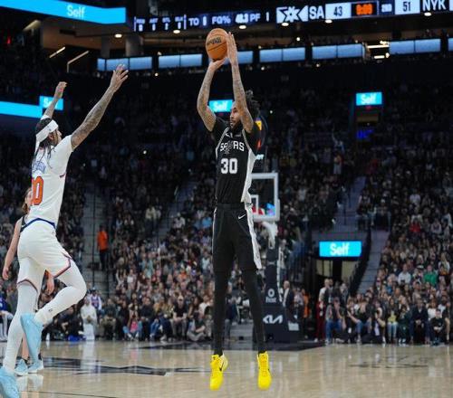 两队的首节战局堪称一波三折。开局马刺迅速陷入被动,3-10落后的困境下,球队突然多点开花,凭借一波15-3的凌厉攻势强势反超5分。但尼克斯随即以11-0的窒息式反击夺回领先优势,将分差拉开至6分。短暂胶着后,马刺内外线协同发力追到29-30仅差1分,可尼克斯再度打出13-2的进攻狂潮,将优势扩大至12分。顽强的马刺并未崩盘,持续反扑追分,首节战罢以36-45暂时落后。