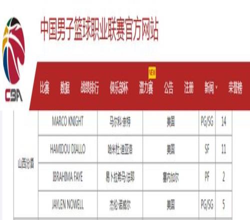 北京时间1月2日,CBA官方公布最新的外援注册信息,山西男篮取消场均只有0.9分的黑根斯注册,同时注册新外援奈特,奈特上赛季效力俄罗斯联赛场均16+4+4。