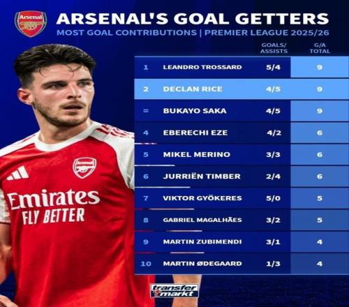 同时,阿尔特塔也盛赞赖斯已是世界顶级中场:“对我而言,是的,在我看来,我们拥有的就是最好的。赖斯一直在为他的比赛增加新的东西,为他在球队中的角色增加新的东西。我看不出他会在哪里停下,因为他仍然可以在很多方面改进,并且他也想改进。他是我们队中非常关键的球员。”