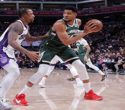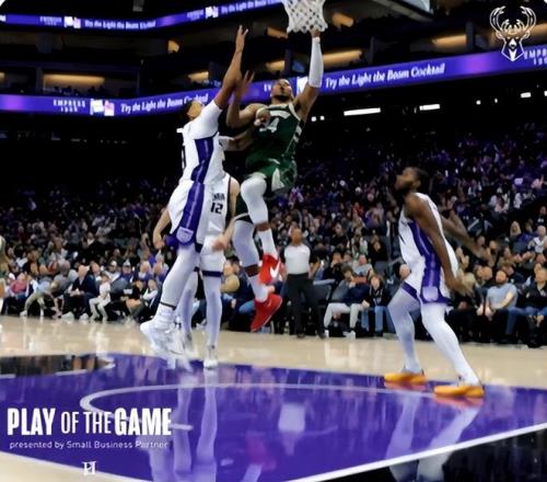 三节打完,扬尼斯21分58秒,12中9,罚球8中6,拿到24分9篮板1助攻,命中率75%,国王孱弱的内线是完全挡不住扬尼斯,国王是联盟防守最差的球队。