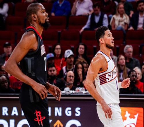 纵观全场比赛,火箭有三个问题,已经到了不得不解决的地步。第一,关键时刻打得是真乱!就以最后6分钟火箭领先7分为例,杜兰特勉强出手三不沾,阿门急停中距离也没有,此后阿门开球失误,伊森底角三分也不中,拿上霍勒迪,对球队节奏并没有太大提升,确实都在乱打!火箭太需要一个控球人了,从阿门到杜兰特,包括谢泼德,都不是这个类型!第二,杜兰特打得明显有些急躁。面对老东家,面对昔日的搭档布克,杜兰特一直非常急于证明自己。