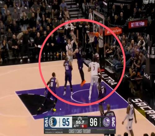 而在最后的一个进攻回合里,国王98:100落后2分,时间还是有很完整的进攻回合的,这个球最终威少拿球时还有6秒,他运了一会,没有选择压时间,而是直接出手了后撤步干拔三分,面对的还是浓眉哥。
