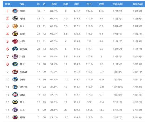 森林狼赢球后3连胜,战绩24胜13负,继续排名西部第六,但胜场差已经追平了第五的火箭。