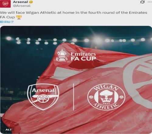 官方:阿森纳将在足总杯第四轮主场对阵维冈竞技。