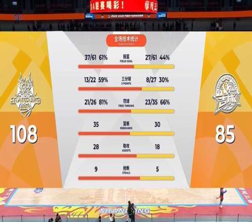 108-85!山东男篮真是越来越好了,主场大胜吉林队23分,喜提7连胜的同时,排名也反超辽宁队,来到了第8位。强援珀赛尔在绝杀了北京队之后,此役再次爆发,短短3节就独砍38分。高诗岩手感甚佳,3投3中,命中率100%。