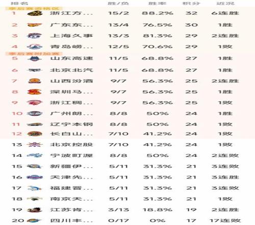 CBA最新积分榜
