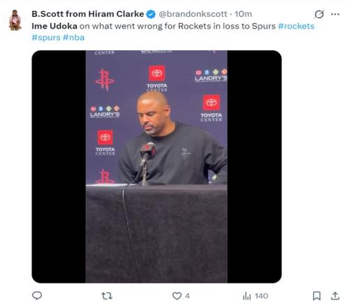 乌度卡在赛后也吐槽了内线的掩护,他表示:我们的进攻不能停滞,我们需要按照我的既定战术去打球,不管是谁去掩护都该努力,申京可以给小个子掩护,小个子也可以给KD掩护,我们要求大个子既能持球也能移动、掩护。我觉得我们的大个子掩护质量不佳。