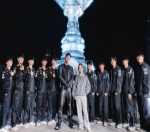 LOL官方分享T1、KT十位决赛选手与邓紫棋和Anyma的合照