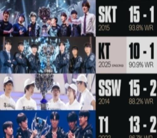 体育资讯11月9日报道宣称 今日,S15全球总决赛将迎来冠军争夺战,对战双方为LCK赛区的三四号种子,KT对阵T1,赛前B站UP主整理了两支队伍的选手数据对