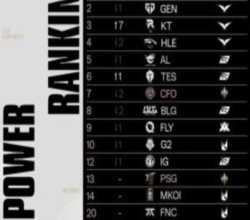 LOL战队全球实力榜更新:LCK包揽前四!AL第五,BLG排名不如CFO!